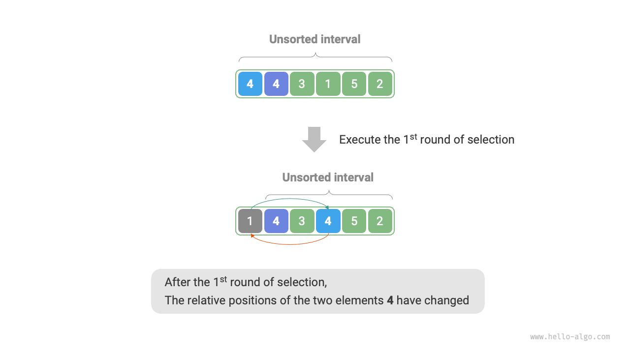 - Non-stable sort: As shown in Figure 11-3, an element