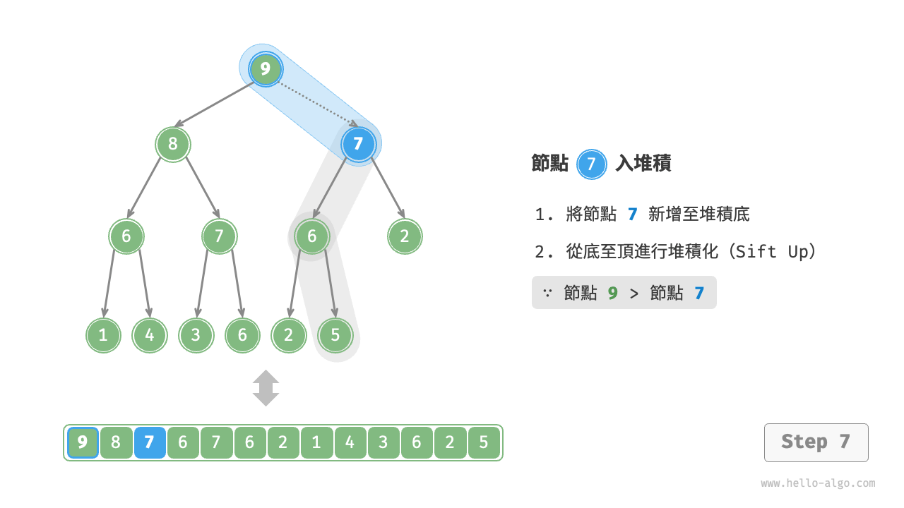 # 在本示例中,flag = 1 時對應小頂堆積,flag = -1 時對應大頂堆積